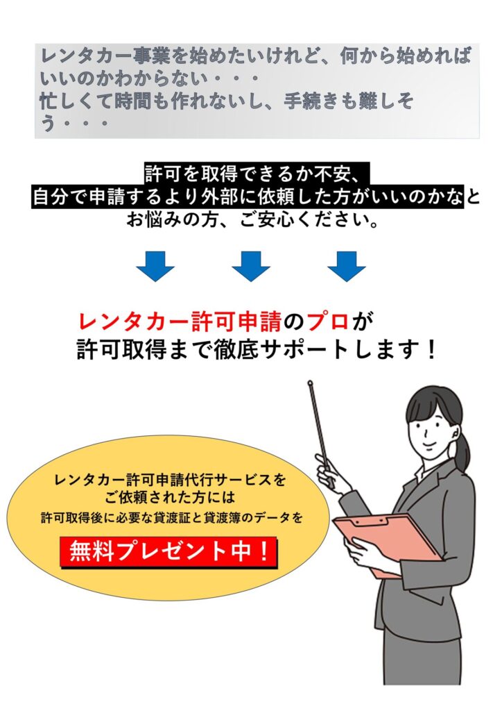 全国対応レンタカー事業許可の申請代行サービス内容